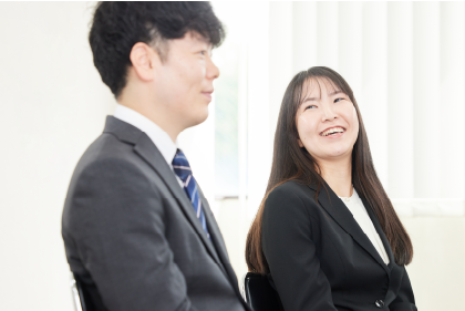 僕もいろんな人と話をするのが好きで。お客様がどんな性格で、何をされているのか、時には人生観や生き方について聞くこともあって。そういった会話の延長で契約になるとやりがいを感じます。グループ総務部はどう?